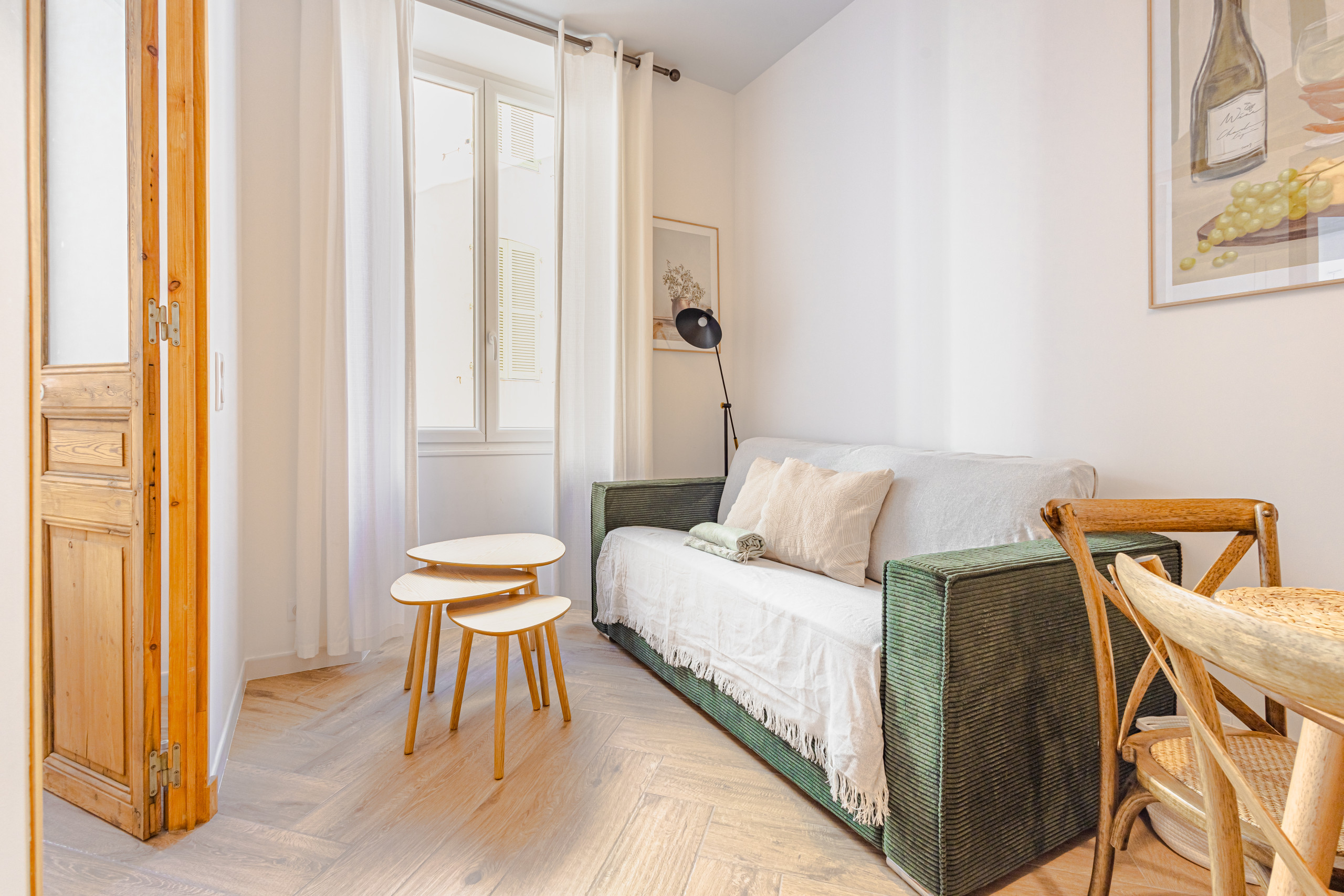 Bathed in natural light, framed by its iconic blue shutters, this space offers a soft atmosphere blending elegance and serenity.