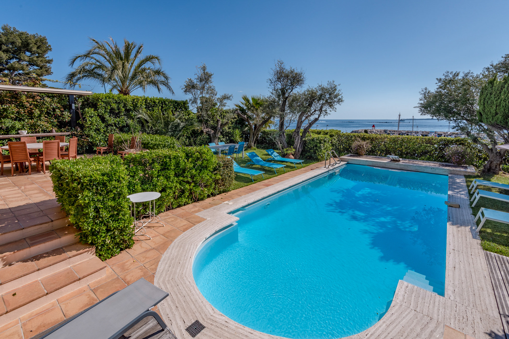 Located at the entrance of Cap d'Antibes, in close proximity to shops, this superb villa offers an exceptional living environment with an unobstructed view of the sea and the harbour.
