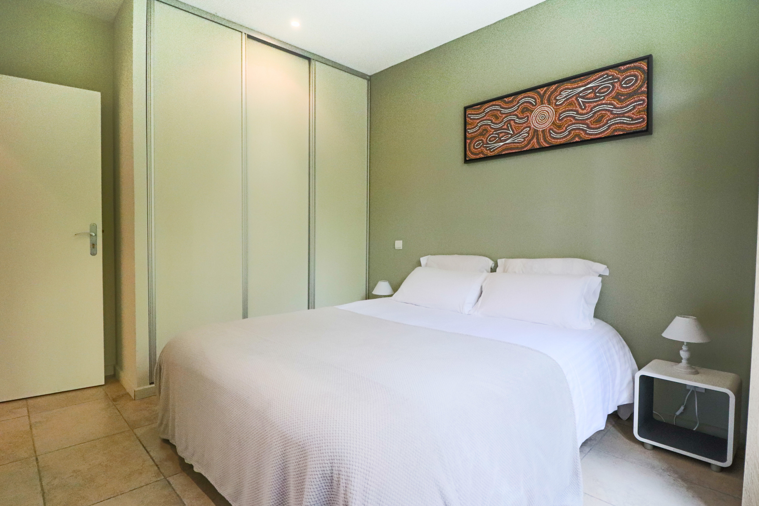 Ideally located in a small quiet street in La Pined and in the heart of Juan-les-Pins, this villa is surrounded by a large landscaped garden of 300 m2 with a large Jacuzzi, a covered terrace with a dining table for 8 people and a Weber barbecue. Beautiful living spaces are distributed in this single storey villa and offer you all the necessary comfort for an ideal stay. A dining room that can accommodate up to 8 people seated, a fully equipped American kitchen, a master bedroom with its own shower room, a secondary bedroom with a large bathroom and shower as well as a studio adjoining the bedroom. villa, consisting of its office space and its own shower room. Finally, a desk with a sofa bed can be used as an extra bed.
