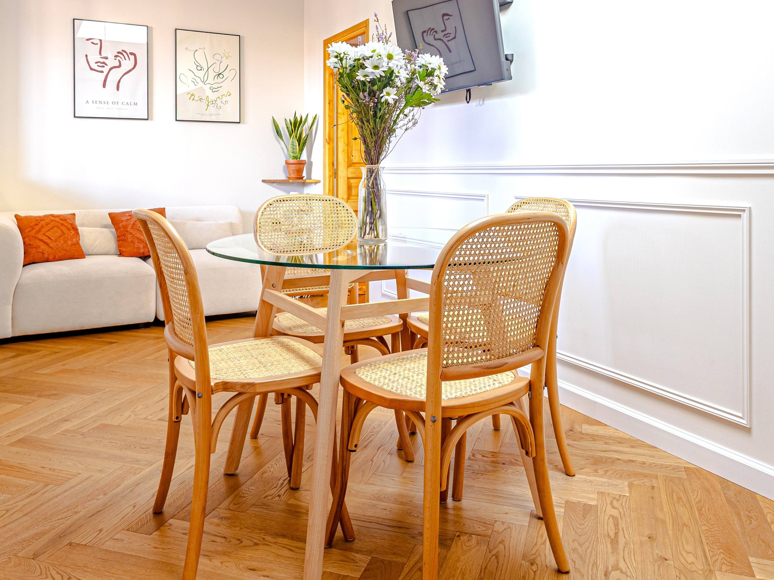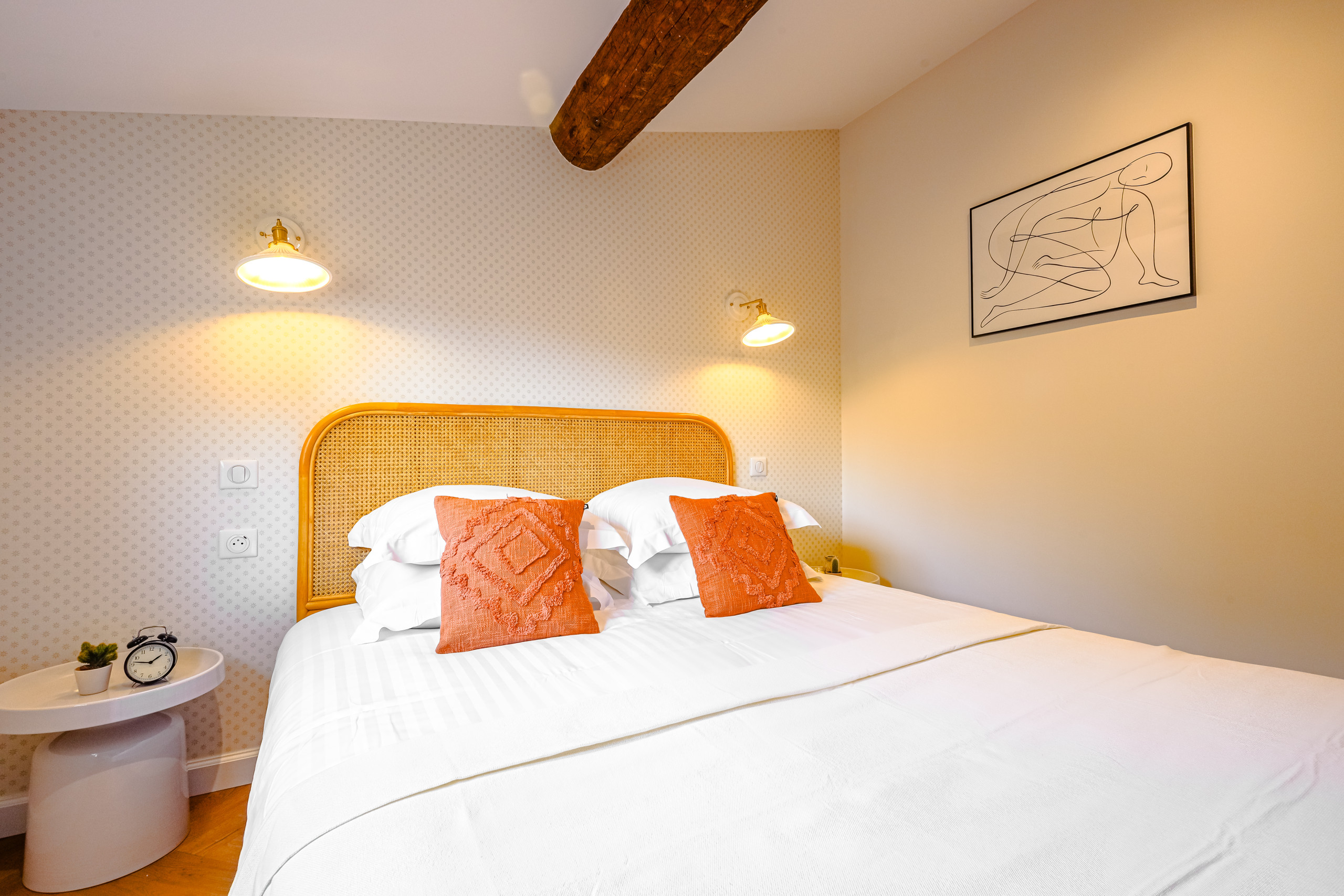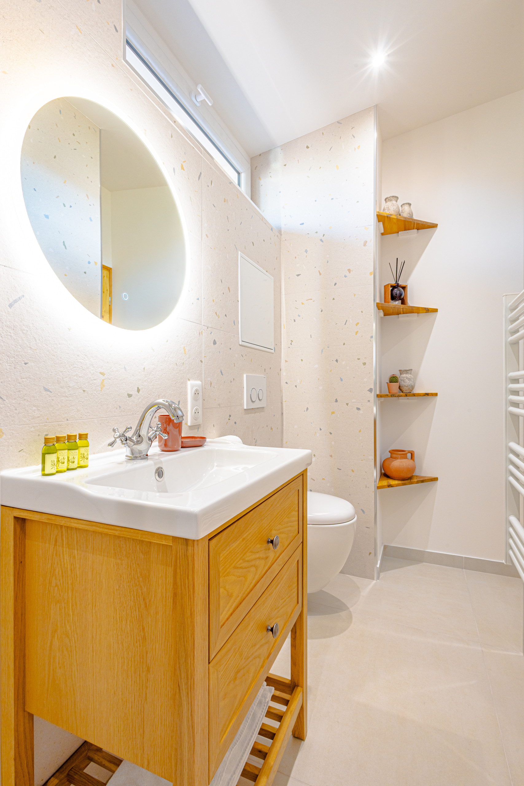 Intérieur lumineux et soigneusement décoré, reprenant les teintes douces et naturelles de la Provence.
