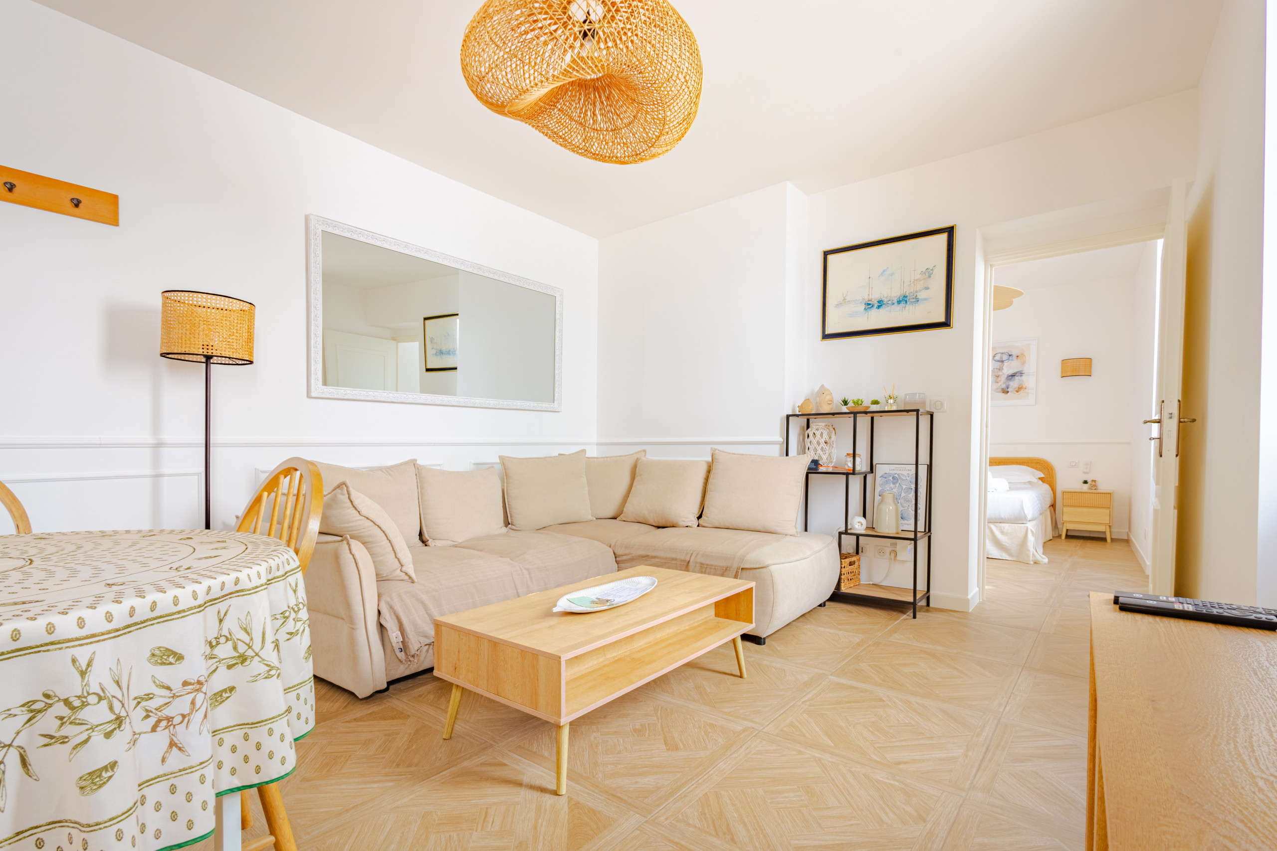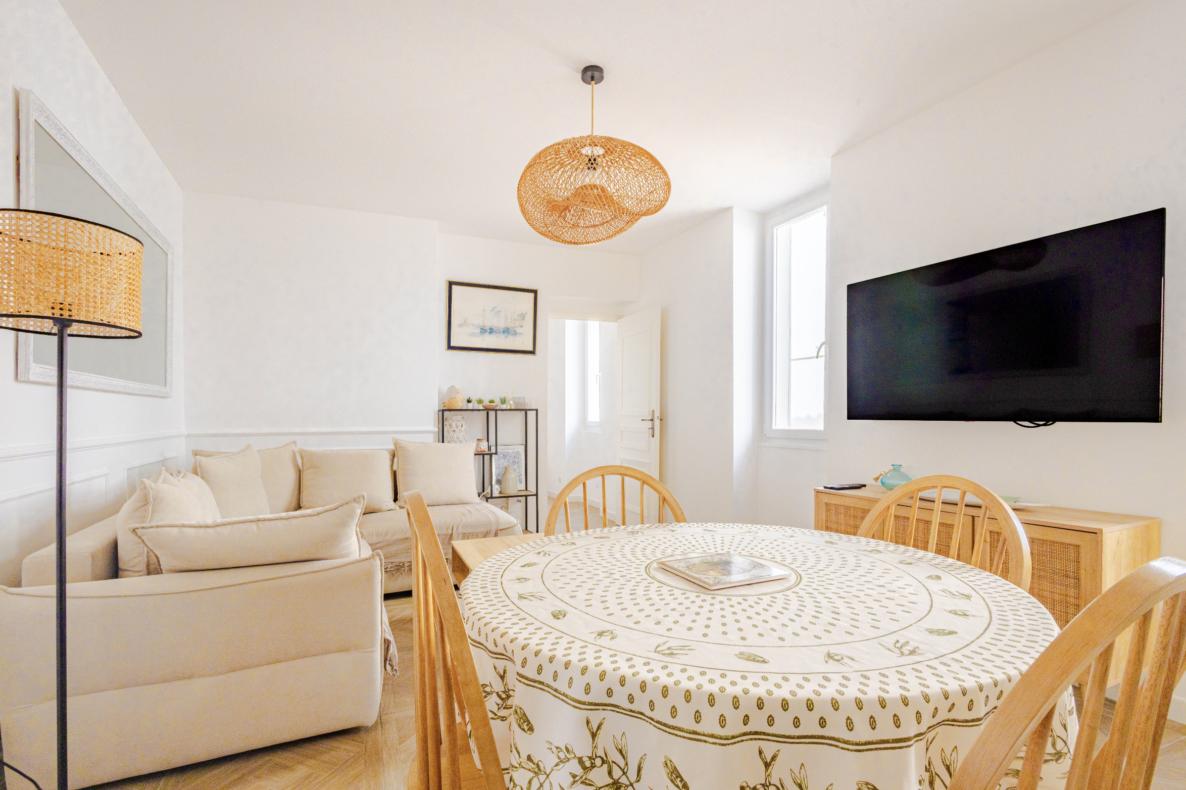 À seulement 250 m de la plage et du marché provençal, cet appartement situé dans une bâtisse du XVIIᵉ siècle a été entièrement rénové avec soin. Il allie charme méditerranéen et confort moderne pour accueillir 3 à 4 personnes.