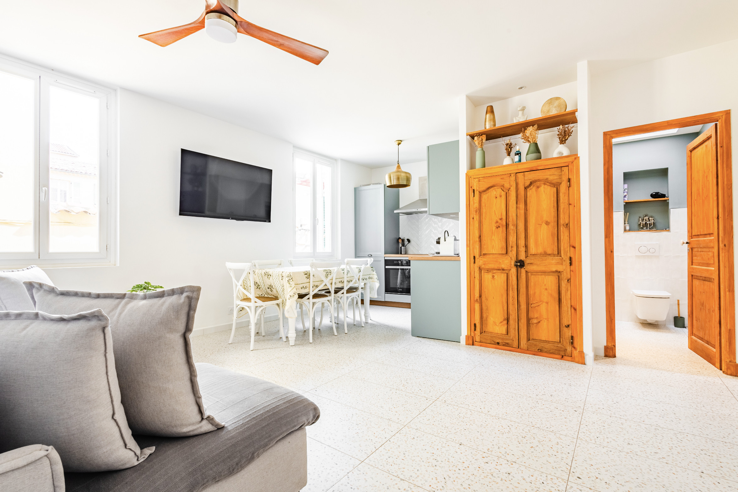 À 600 m de la plage et du marché provençal, cet appartement rénové en 2023 dans un immeuble du XVIIᵉ siècle allie charme méditerranéen et confort moderne. Il accueille jusqu’à 5 personnes dans un cadre élégant et chaleureux.