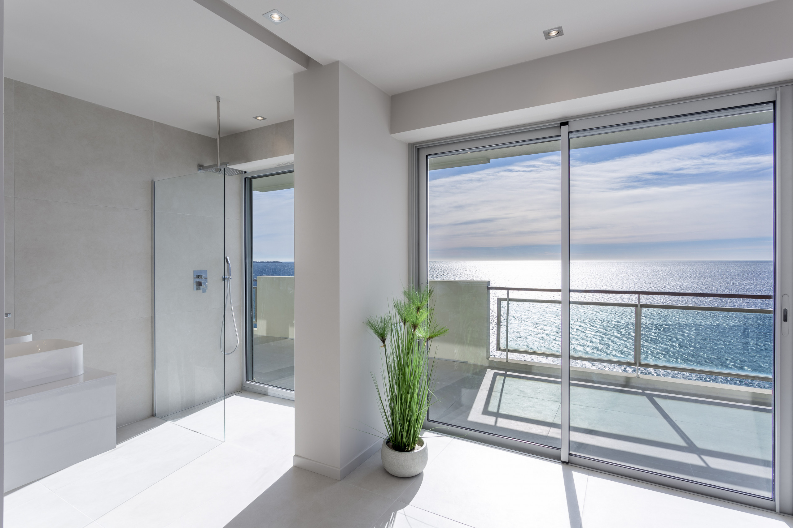 Un long balcon ensoleillé de 75 m² entoure tout l'appartement de la chambre à la cuisine pour profiter d'un délicieux repas vue mer.