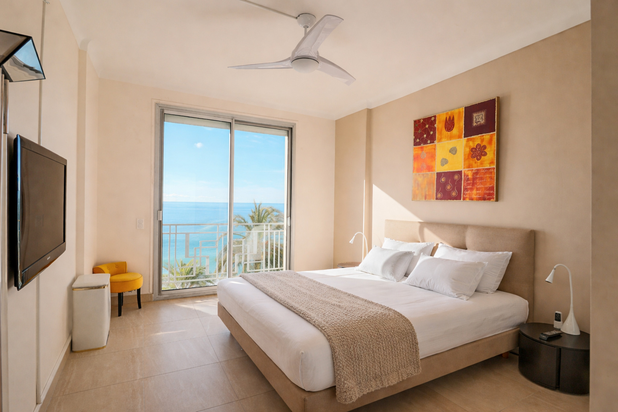 Le Beau Soleil est un appartement d’exception de 125 m², pouvant accueillir jusqu’à 6 personnes, offrant une vue panoramique à 180° sur la mer. Depuis son balcon ensoleillé, laissez-vous émerveiller par un panorama spectaculaire sur les îles de Lérins et les montagnes de Théoule-sur-Mer.