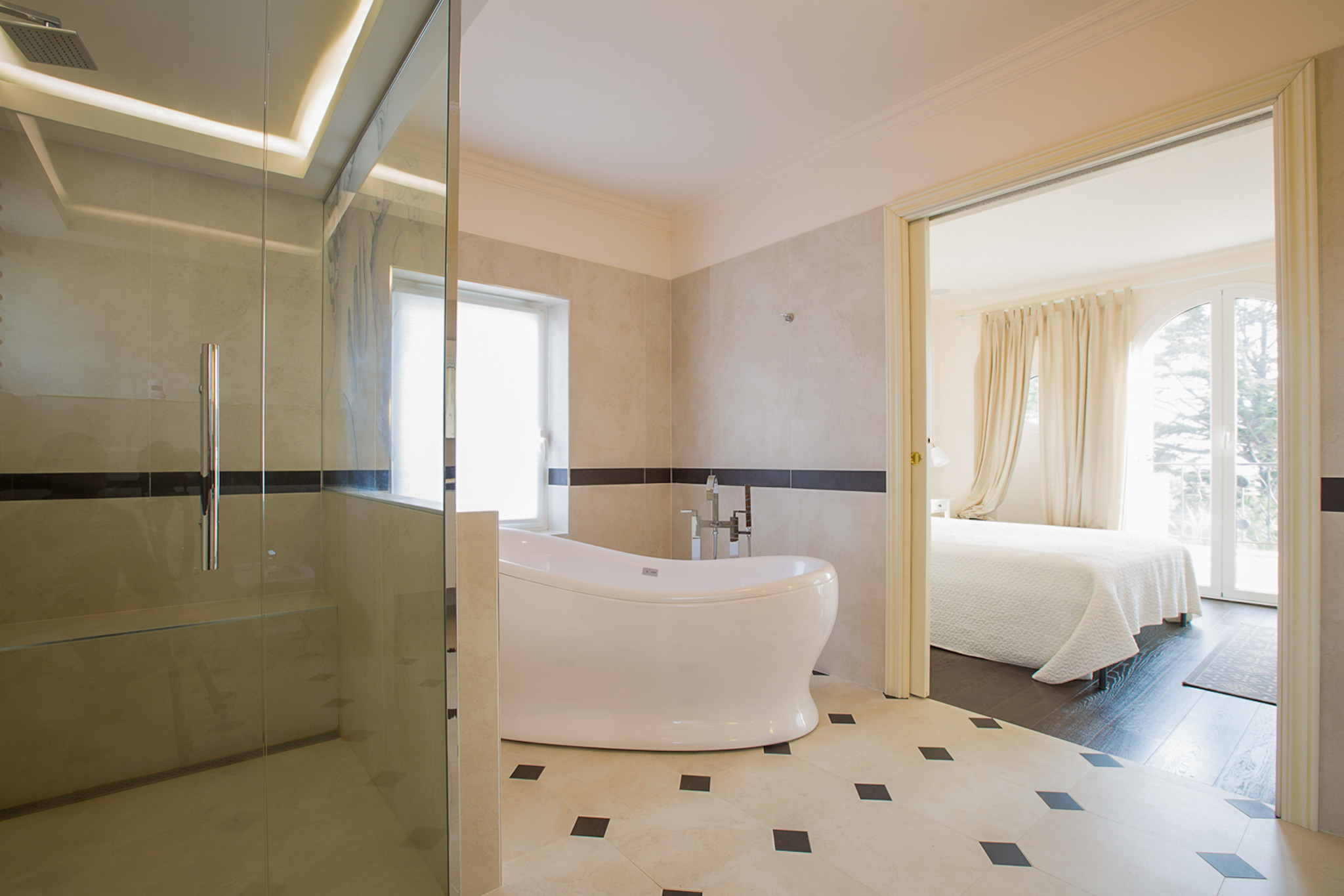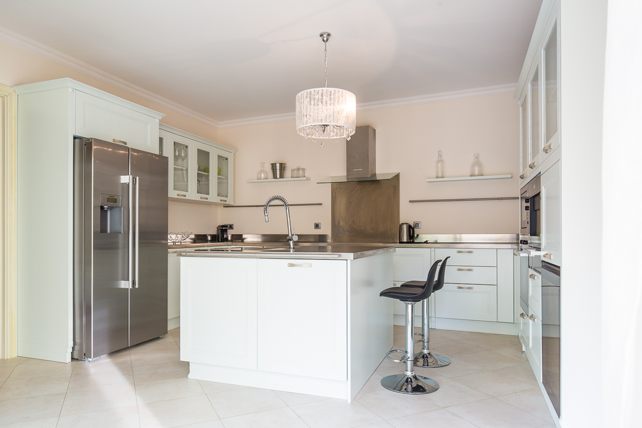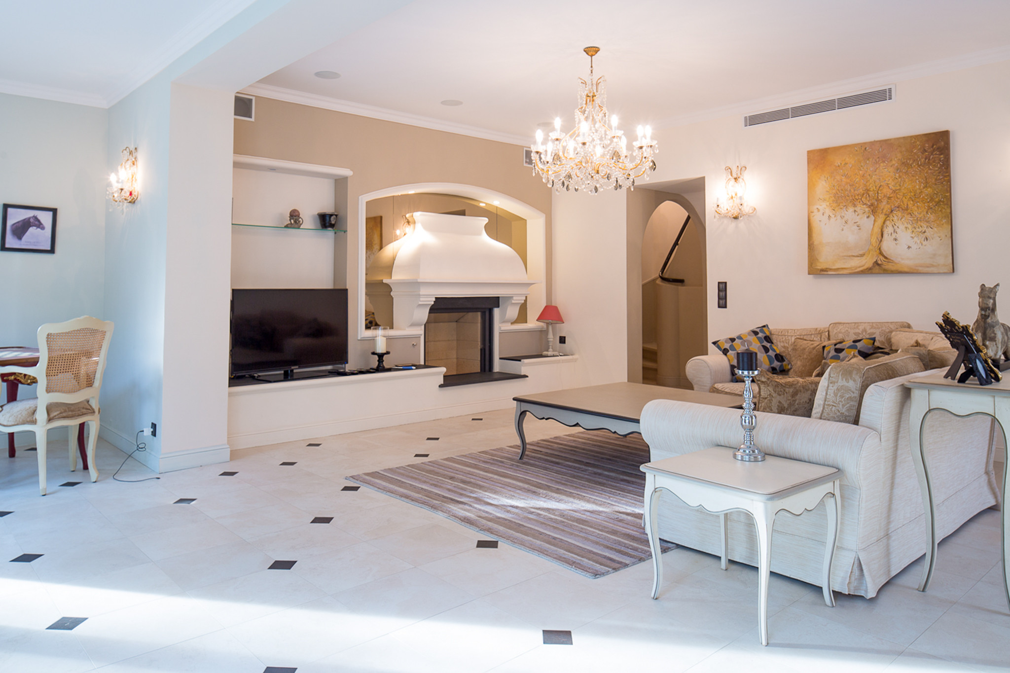 La villa s’ouvre sur un élégant hall d’entrée avec toilettes invités, menant à un vaste séjour avec cheminée, une salle à manger conviviale et une cuisine entièrement équipée. L’espace nuit principal se compose de deux suites, d’une chambre supplémentaire avec salle de bains, ainsi que d’une somptueuse suite parentale disposant de sa propre salle de bains et d’un balcon privé.