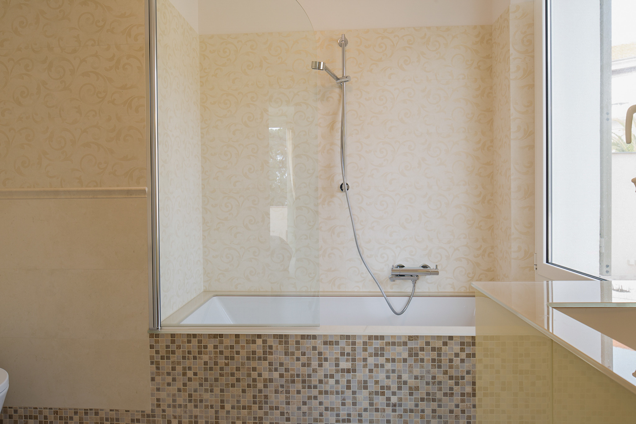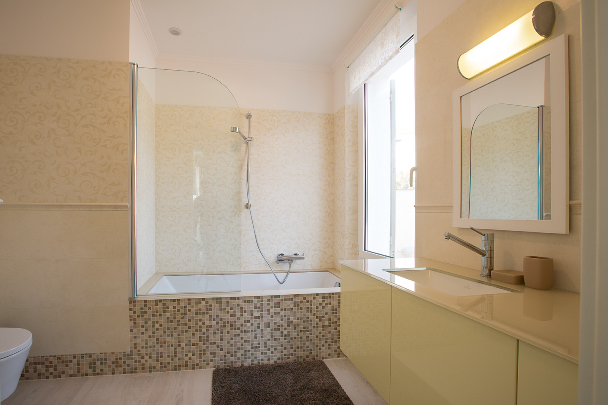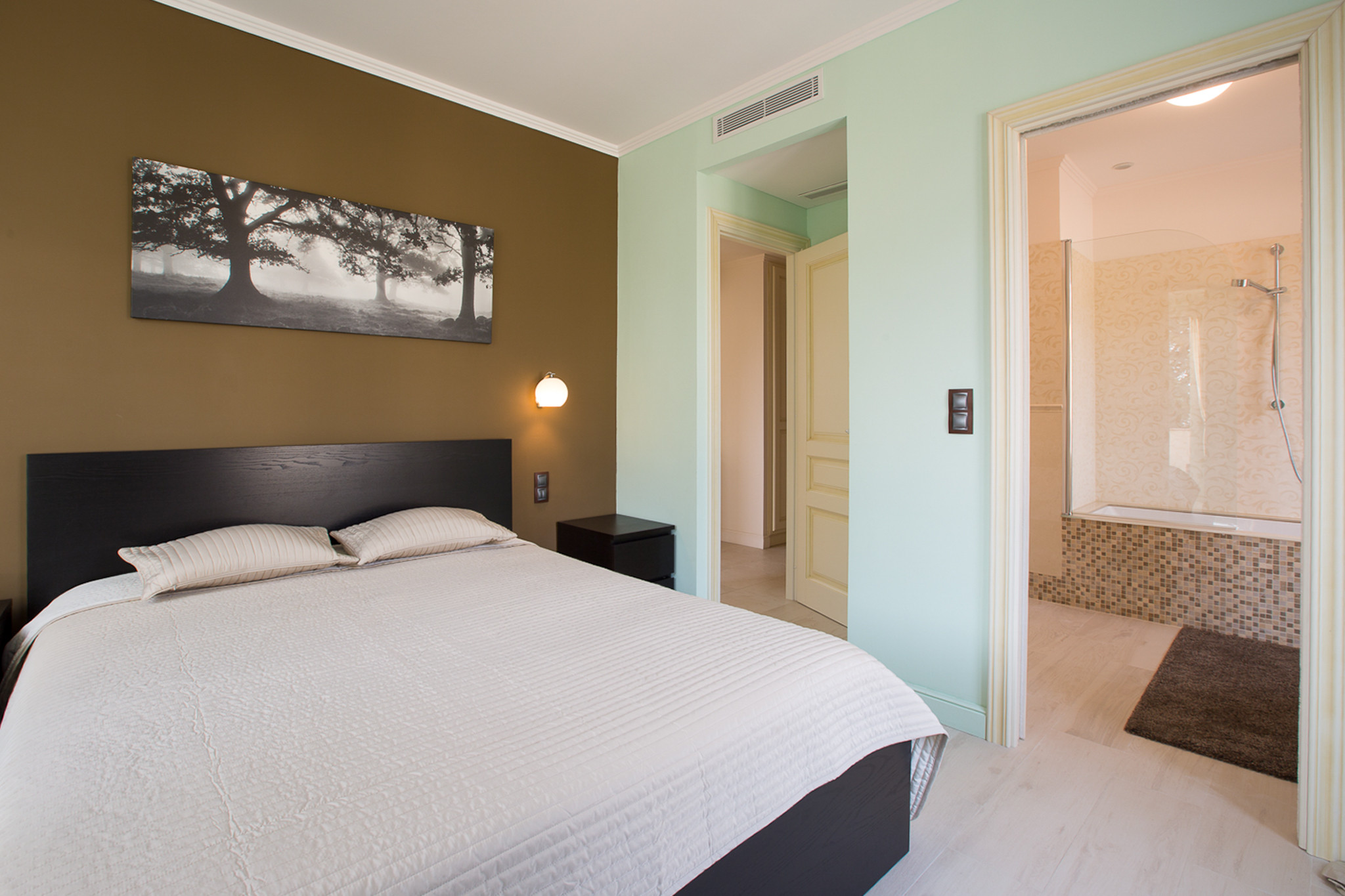 La villa s’ouvre sur un élégant hall d’entrée avec toilettes invités, menant à un vaste séjour avec cheminée, une salle à manger conviviale et une cuisine entièrement équipée. L’espace nuit principal se compose de deux suites, d’une chambre supplémentaire avec salle de bains, ainsi que d’une somptueuse suite parentale disposant de sa propre salle de bains et d’un balcon privé.