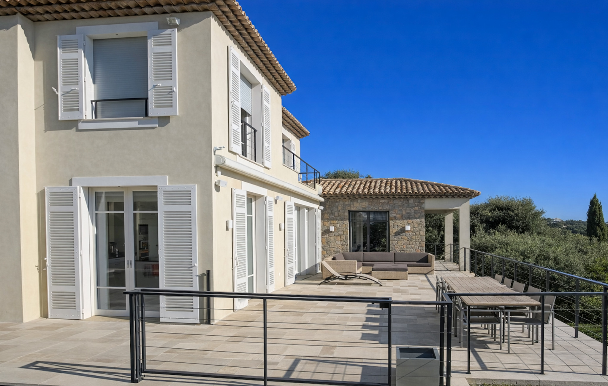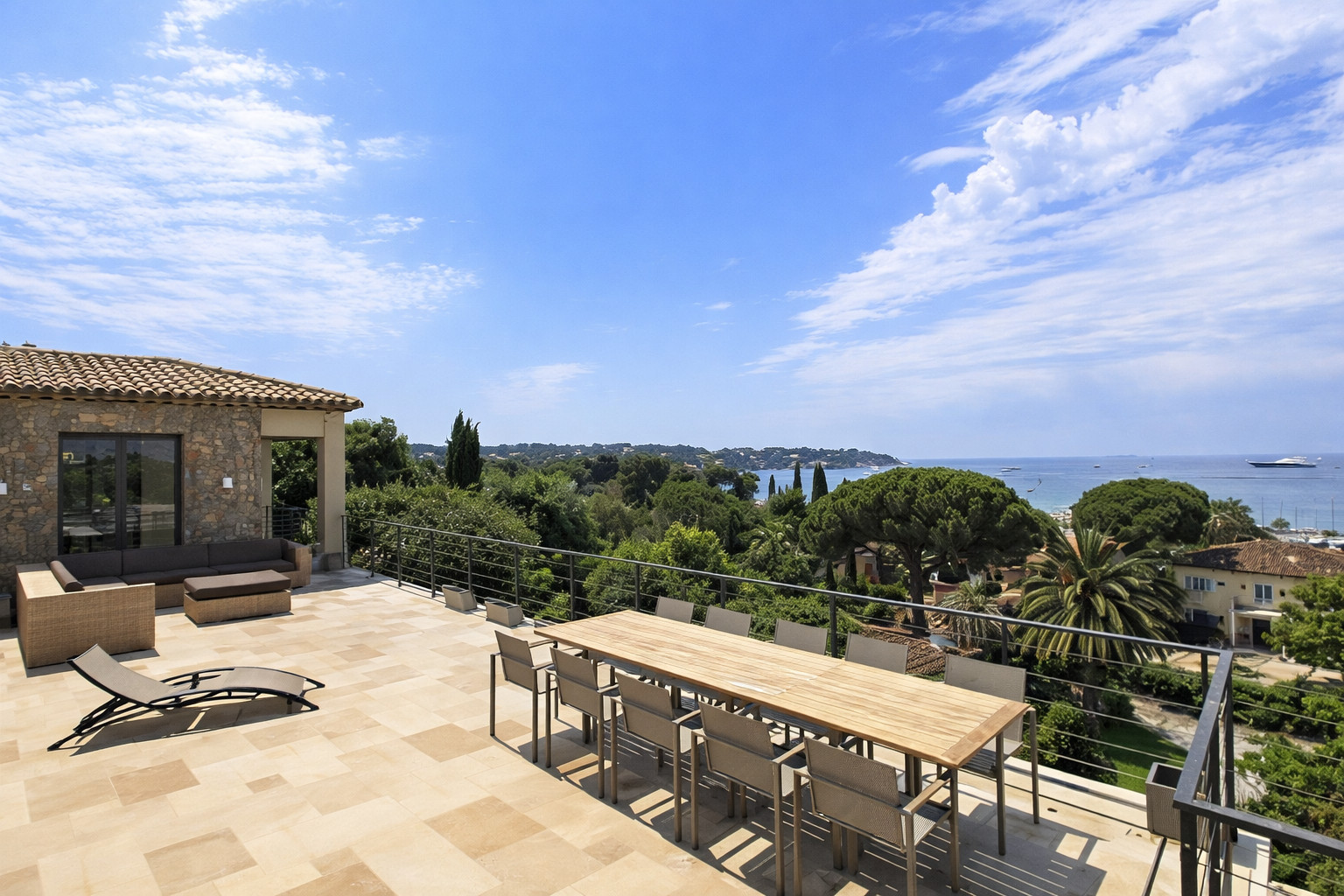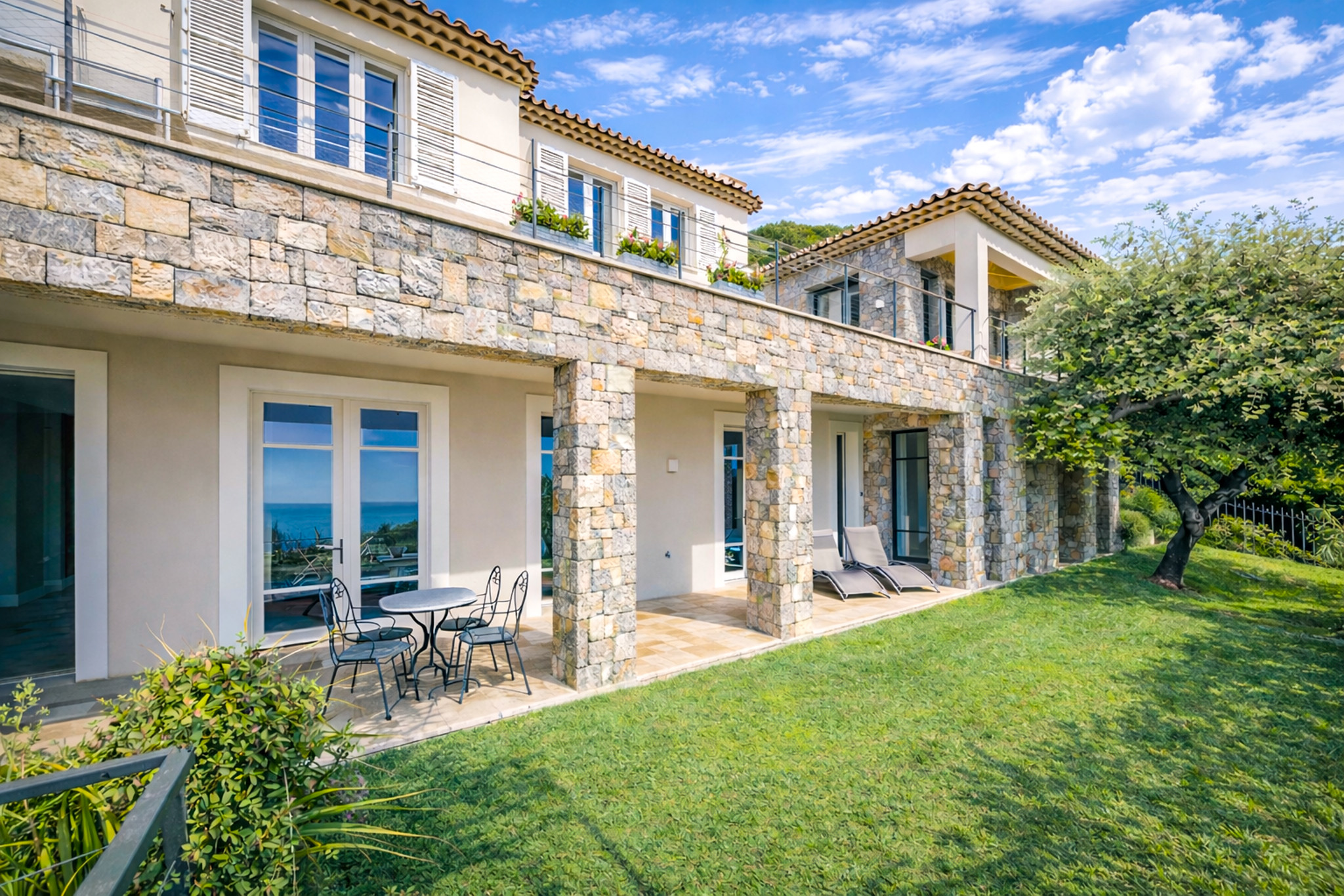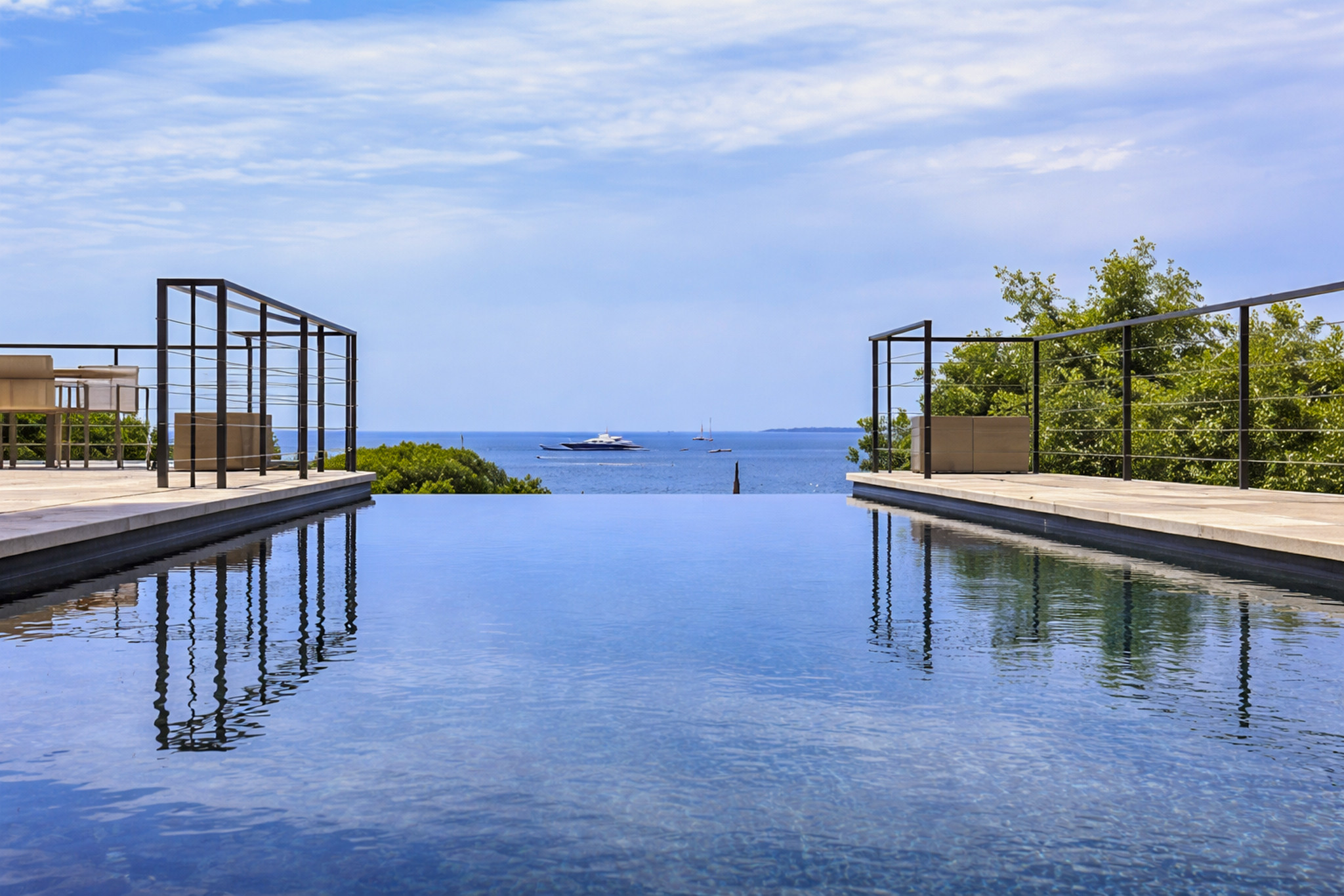 Les espaces de vie s’ouvrent sur de larges terrasses, idéales pour recevoir, et une piscine miroir chauffée face à la Méditerranée. Prestations haut de gamme : climatisation, ascenseur desservant plusieurs niveaux, Wi-Fi, système d’alarme et buanderie.